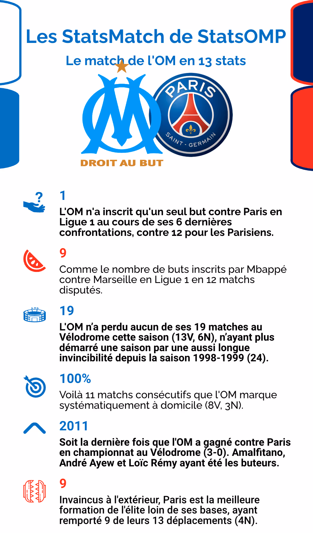 Les statistiques marseillaises et parisiennes avant l’opposition entre les deux formations, dimanche 31 mars à 20h45 au stade Vélodrome pour le compte de la 27è journée de Ligue 1 2023-2024.