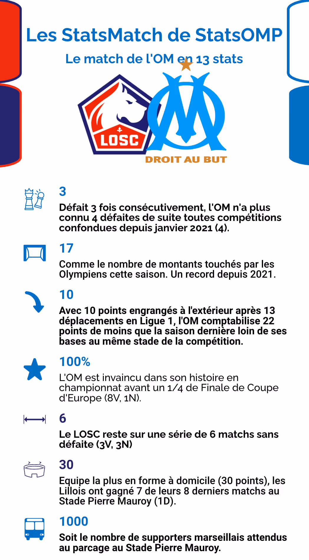 Les statistiques marseillaises et lilloises avant l’opposition entre les deux formations, vendredi 5 Avril à 21h au stade Pierre Mauroy en ouverture de la 28è journée de Ligue 1 2023-2024.