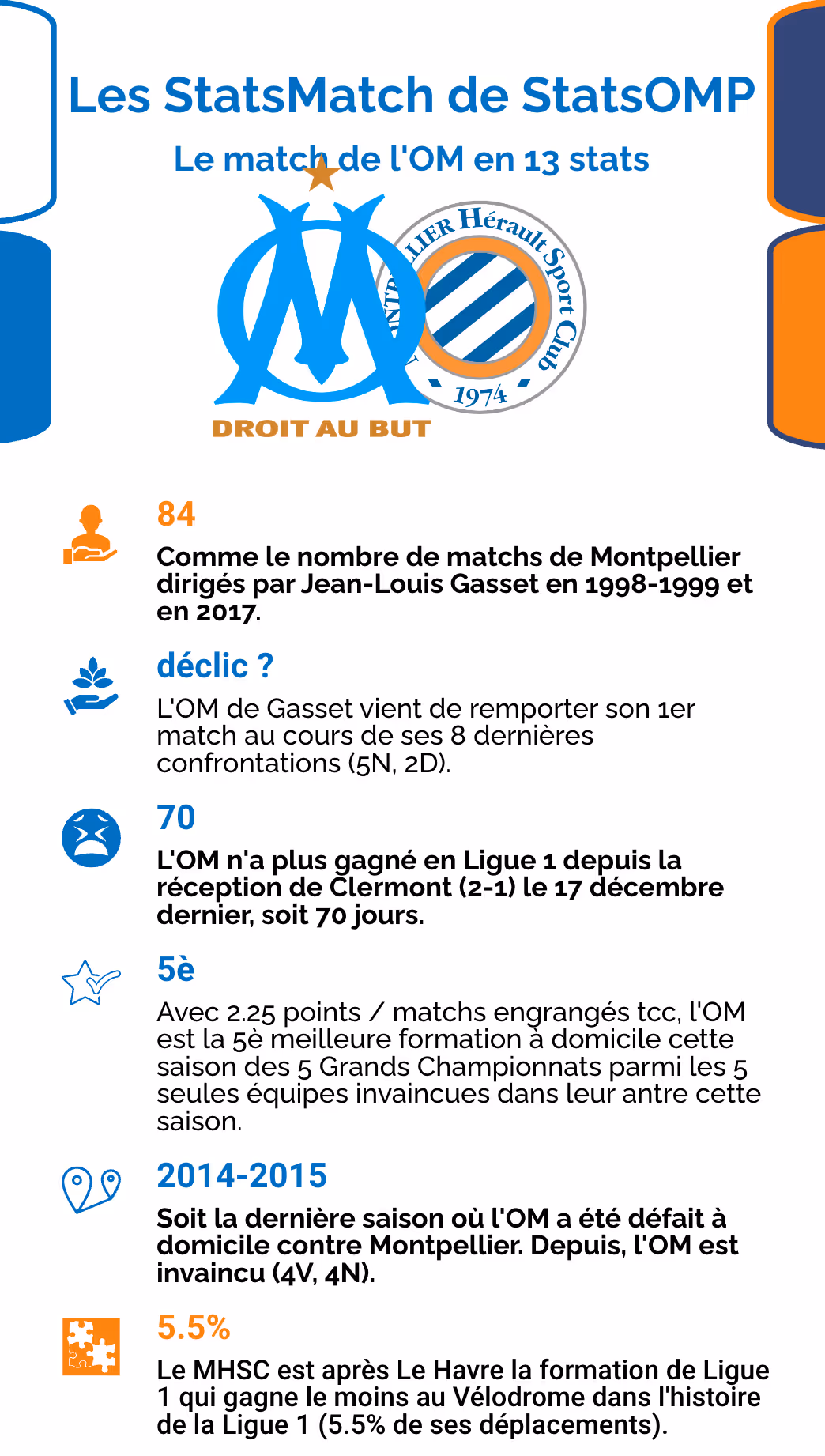 La WinProbability de StatsOMP est un outil statistique de plusieurs dizaines de calculs qui suggère les chances de victoire de l'OM et de Montpellier, en se basant sur les performances historiques des deux équipes.