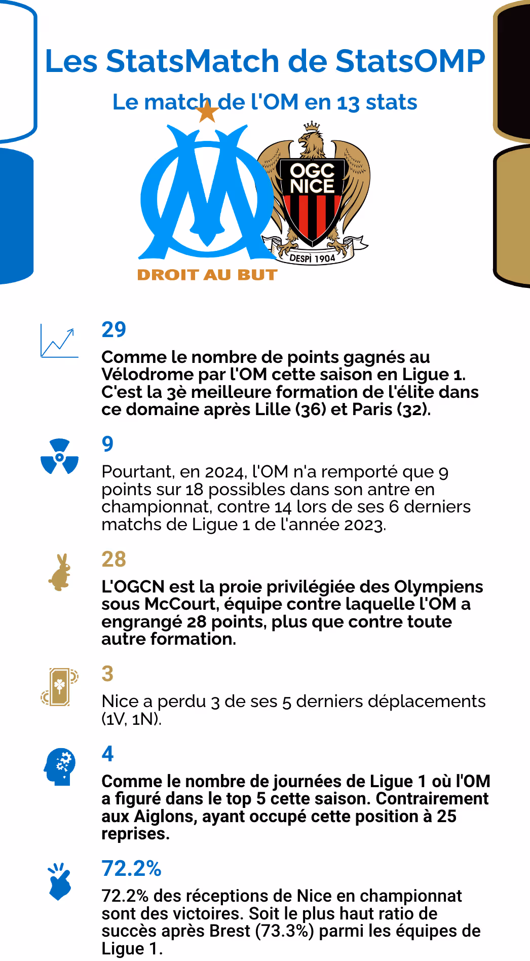 Les statistiques marseillaises et niçoises avant l’opposition entre les deux formations, Mercredi 24 Avril à 21h au Stade Vélodrome pour le compte de la 29è journée de Ligue 1 2023-2024.